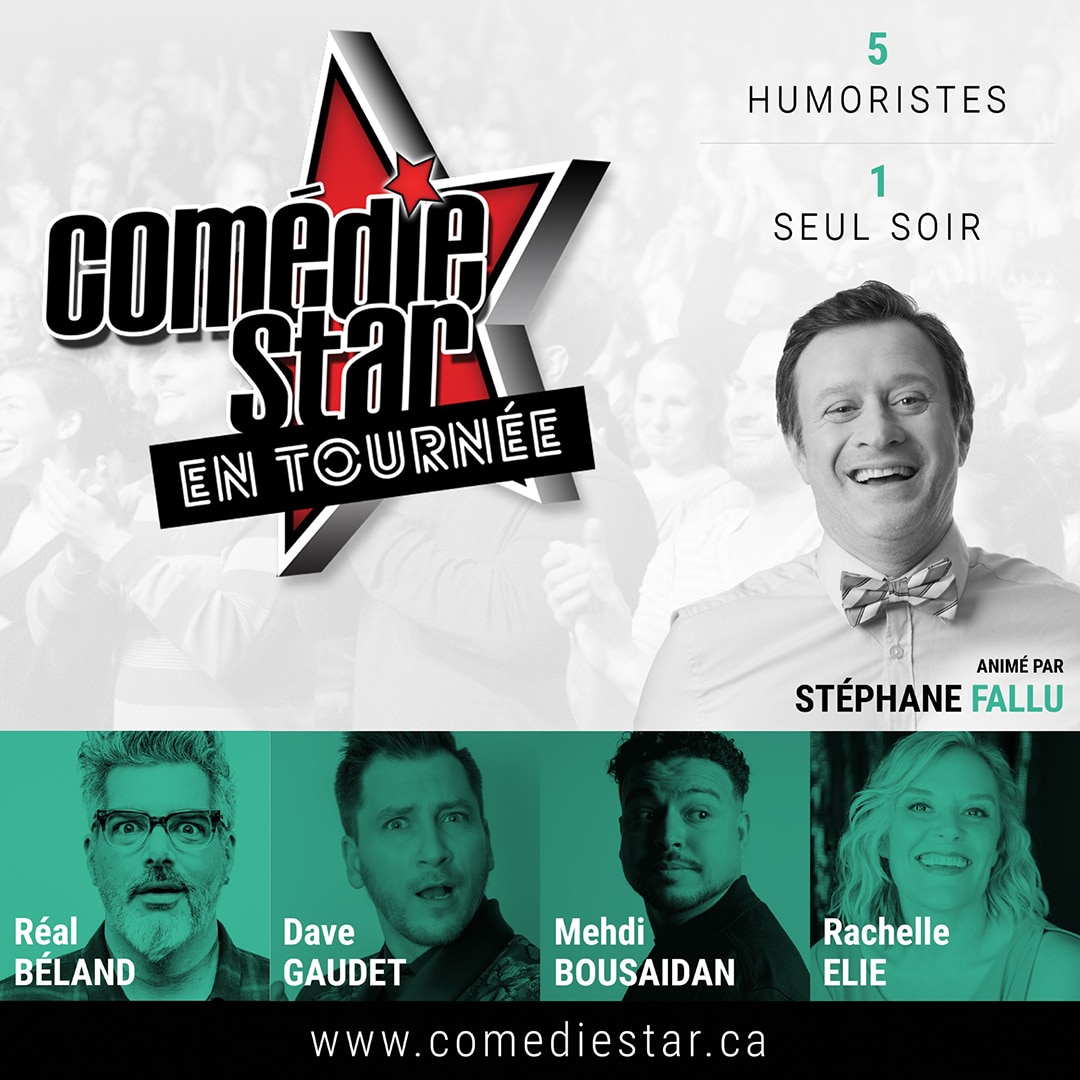 Le seul Gala annuel en programmation régulière qui met en vedette nos grands de l’humour. Gala Comédie Star, c’est 5 humoristes chevronnés qui viennent à tour de rôle présenter un numéro de leur propre chef! Une liberté inégalée qui permet d’assurer surprises et émotions!